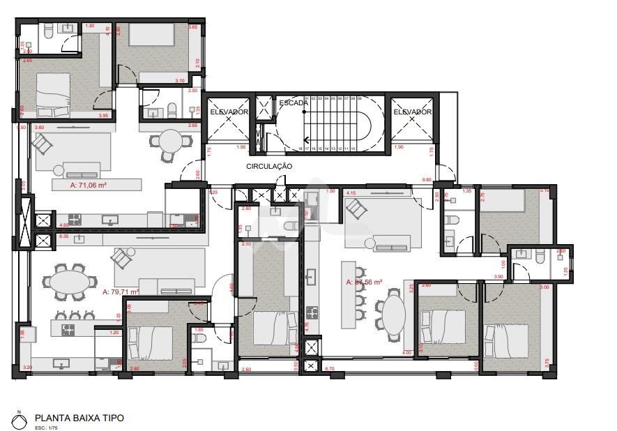 Apartamentos de 71 a 87 m² de área privativa