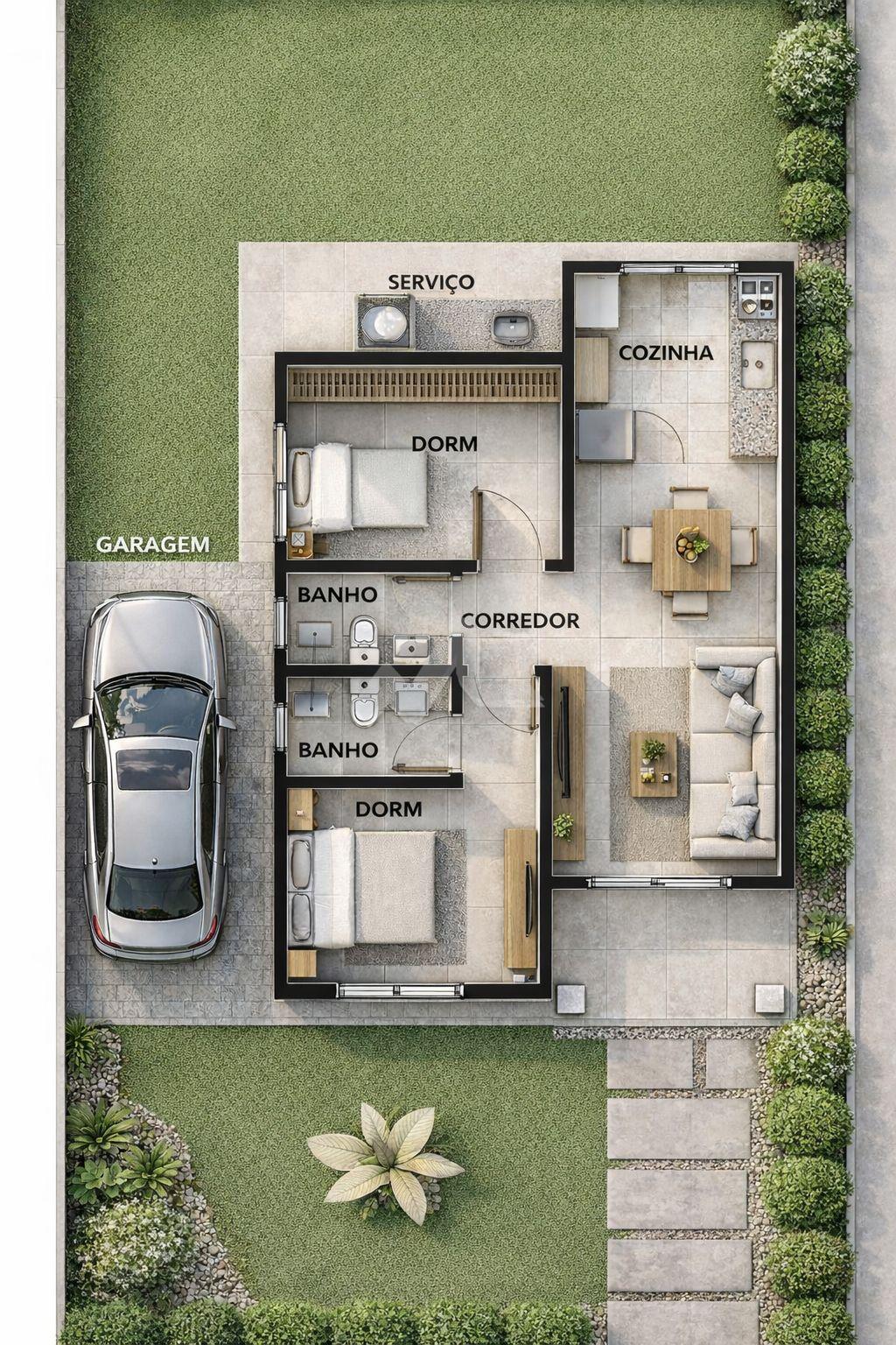 OBS: Imagem em 3D da garagem meramente ilustrativa, com finalidade exclusiva de apresentação visual do projeto, podendo sofrer ajustes e não possuindo caráter contratual.