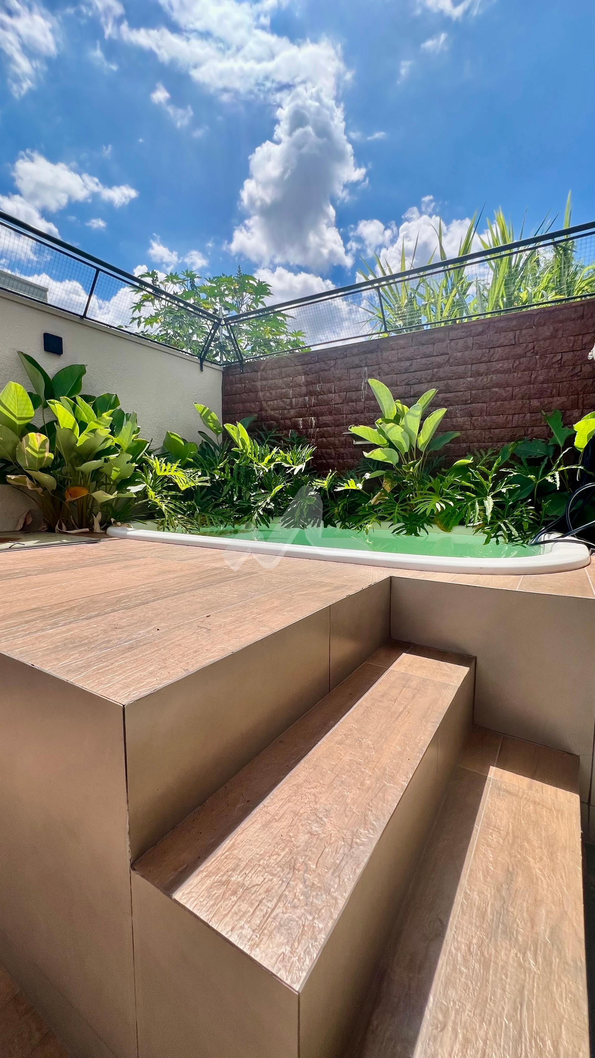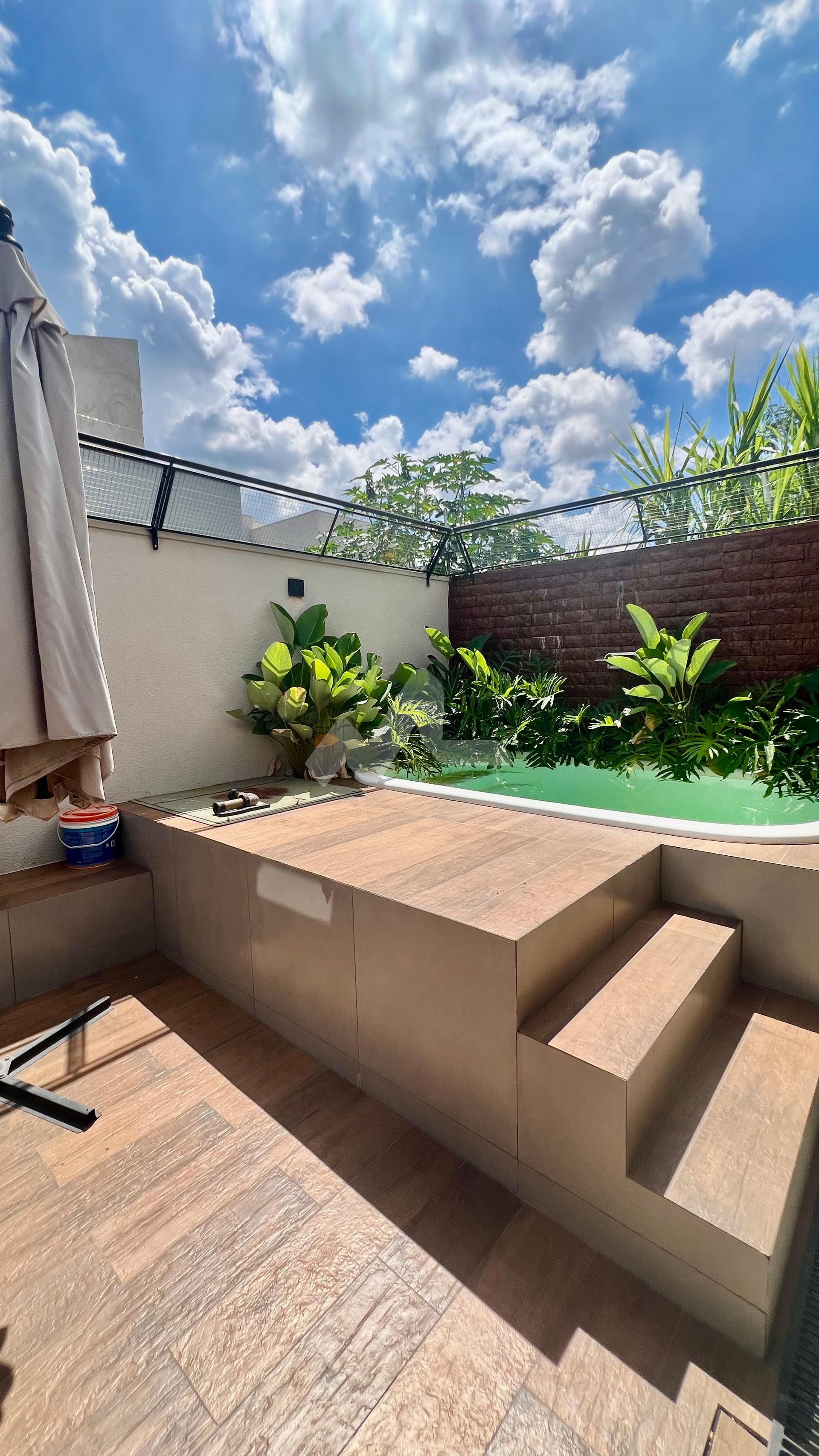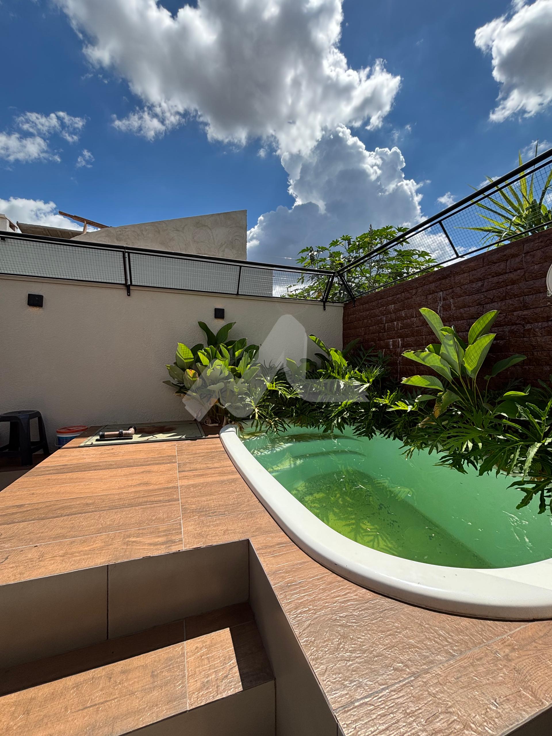 Casa com piscina, e pequena sobra de terreno nos fundo.