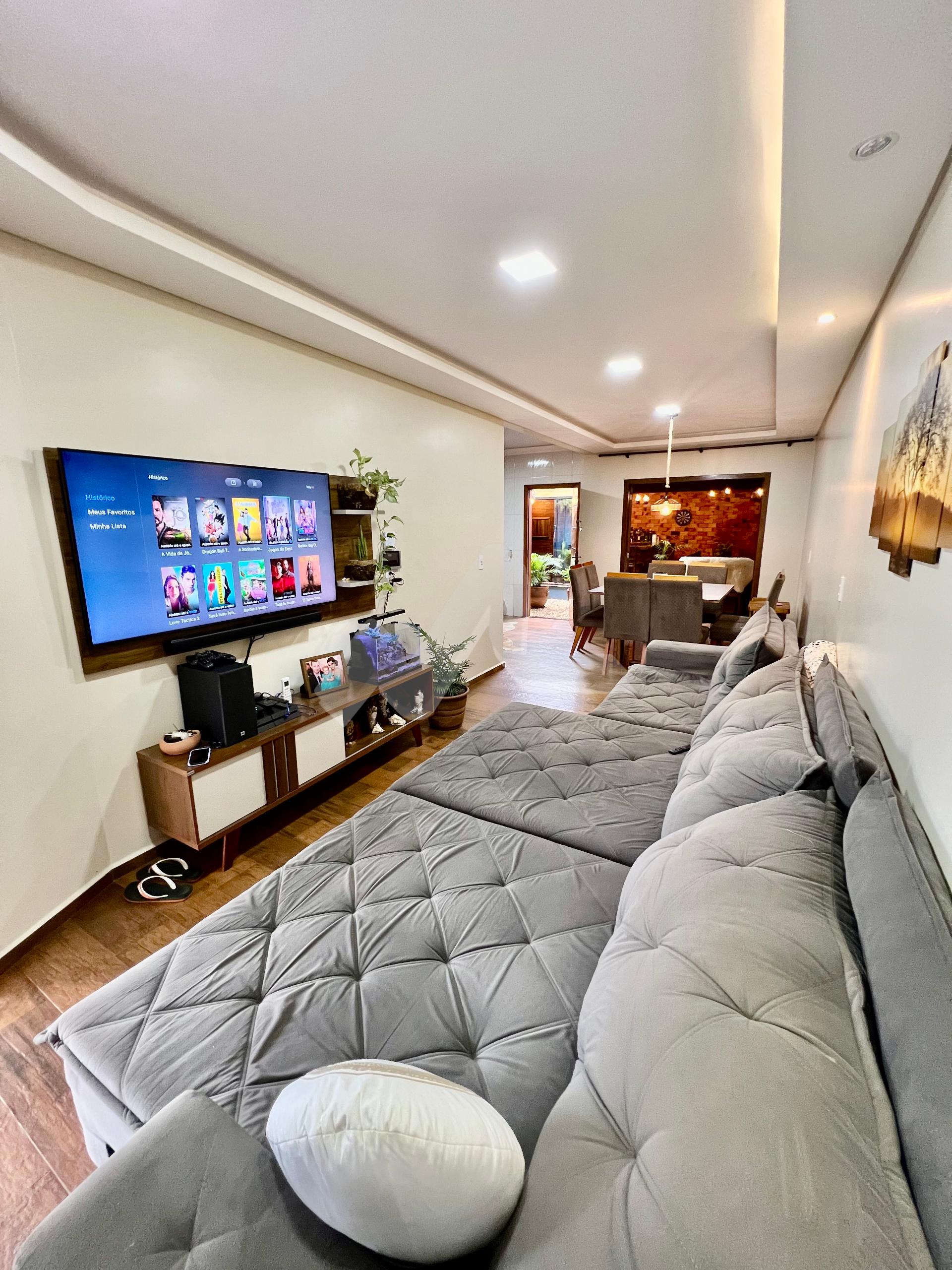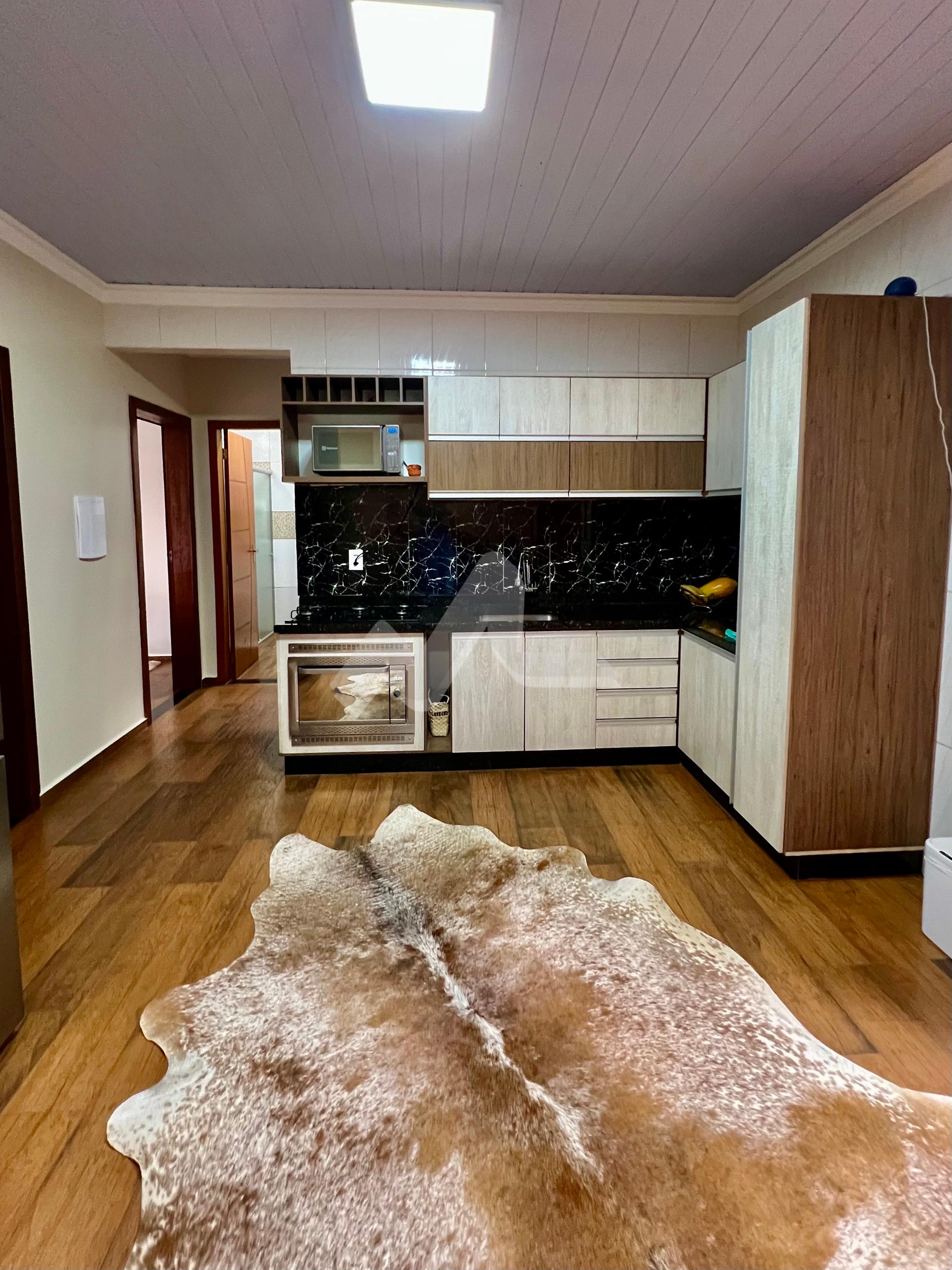Dois quartos, sendo uma suíte, e cozinha com forro de PVC e acabamento em gesso (60m²)